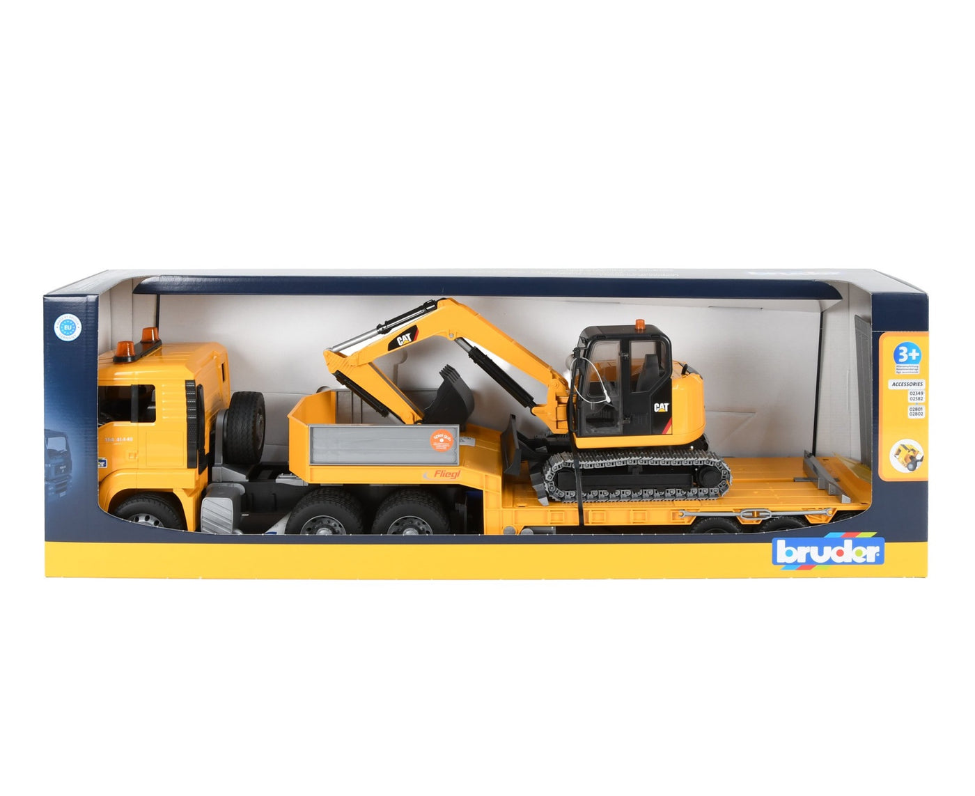 Bruder - MAN TGA Truck w/ Low Loader Trailer & CAT Mini Excavator - 86cm Long