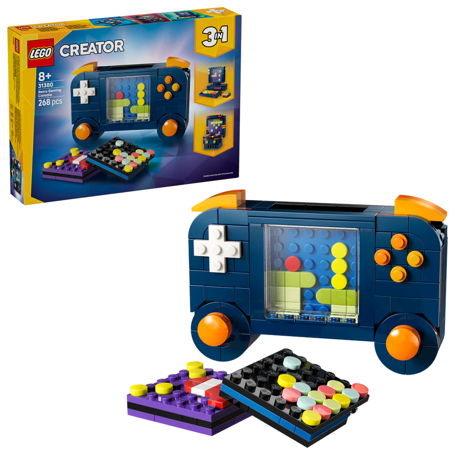 {"id":9218176418043,"title":"LEGO - Retro Gaming Console (31380)","handle":"lego-retro-gaming-console-31380","description":"\u003ch1\u003eCreator 3-in-1 - Retro Gaming Console\u003c\/h1\u003e\n\u003ch2\u003eLEGO 31380\u003c\/h2\u003e\n\u003cp\u003eKids and gamers ages 8 and up will love to build, play with and display this LEGO® Creator 3-in-1 Retro Gaming Console (31380) building set. This detailed and fun gamer room decor offers 3 different building options with the same set of bricks.\u003c\/p\u003e\n\u003cp\u003eBoys and girls can choose to build a handheld gaming console toy with 2 moving joysticks and 2 moving buttons, plus a choice of 3 game cartridges to insert into it. This can then be rebuilt into a desktop mini computer which includes a keyboard and monitor, a disk to place inside and a mouse, or an arcade game machine.\u003c\/p\u003e\n\u003cp\u003eThis LEGO Creator 3-in-1 set will inspire kids’ imaginations and make a great gift for gamers and nostalgic adults. And with the LEGO Builder app, kids can experience an easy and intuitive building adventure. They can zoom in and rotate their sets using 3D building instructions, track their progress and save sets in one place. Please note that models cannot be built simultaneously. Set contains 268 pieces.\u003c\/p\u003e","published_at":"2026-01-14T14:45:00+02:00","created_at":"2026-01-14T14:45:00+02:00","vendor":"LEGO","type":"Construction Toys","tags":["Brand_LEGO","Category_LEGO","Type_LEGO Creator"],"price":36995,"price_min":36995,"price_max":36995,"available":true,"price_varies":false,"compare_at_price":null,"compare_at_price_min":0,"compare_at_price_max":0,"compare_at_price_varies":false,"variants":[{"id":47856601006331,"title":"Default Title","option1":"Default Title","option2":null,"option3":null,"sku":"5702018054734","requires_shipping":true,"taxable":true,"featured_image":null,"available":true,"name":"LEGO - Retro Gaming Console (31380)","public_title":null,"options":["Default Title"],"price":36995,"weight":0,"compare_at_price":null,"inventory_management":"shopify","barcode":null,"requires_selling_plan":false,"selling_plan_allocations":[]}],"images":["\/\/jixhobbies.co.za\/cdn\/shop\/files\/31380.webp?v=1768464058","\/\/jixhobbies.co.za\/cdn\/shop\/files\/313801_cc983d65-ed17-4028-9bf9-270635fc4a74.webp?v=1768464143","\/\/jixhobbies.co.za\/cdn\/shop\/files\/313802.webp?v=1768464143"],"featured_image":"\/\/jixhobbies.co.za\/cdn\/shop\/files\/31380.webp?v=1768464058","options":["Title"],"media":[{"alt":null,"id":40472724701435,"position":1,"preview_image":{"aspect_ratio":1.0,"height":900,"width":900,"src":"\/\/jixhobbies.co.za\/cdn\/shop\/files\/31380.webp?v=1768464058"},"aspect_ratio":1.0,"height":900,"media_type":"image","src":"\/\/jixhobbies.co.za\/cdn\/shop\/files\/31380.webp?v=1768464058","width":900},{"alt":null,"id":40472731615483,"position":2,"preview_image":{"aspect_ratio":1.779,"height":506,"width":900,"src":"\/\/jixhobbies.co.za\/cdn\/shop\/files\/313801_cc983d65-ed17-4028-9bf9-270635fc4a74.webp?v=1768464143"},"aspect_ratio":1.779,"height":506,"media_type":"image","src":"\/\/jixhobbies.co.za\/cdn\/shop\/files\/313801_cc983d65-ed17-4028-9bf9-270635fc4a74.webp?v=1768464143","width":900},{"alt":null,"id":40472725029115,"position":3,"preview_image":{"aspect_ratio":1.779,"height":506,"width":900,"src":"\/\/jixhobbies.co.za\/cdn\/shop\/files\/313802.webp?v=1768464143"},"aspect_ratio":1.779,"height":506,"media_type":"image","src":"\/\/jixhobbies.co.za\/cdn\/shop\/files\/313802.webp?v=1768464143","width":900}],"requires_selling_plan":false,"selling_plan_groups":[],"content":"\u003ch1\u003eCreator 3-in-1 - Retro Gaming Console\u003c\/h1\u003e\n\u003ch2\u003eLEGO 31380\u003c\/h2\u003e\n\u003cp\u003eKids and gamers ages 8 and up will love to build, play with and display this LEGO® Creator 3-in-1 Retro Gaming Console (31380) building set. This detailed and fun gamer room decor offers 3 different building options with the same set of bricks.\u003c\/p\u003e\n\u003cp\u003eBoys and girls can choose to build a handheld gaming console toy with 2 moving joysticks and 2 moving buttons, plus a choice of 3 game cartridges to insert into it. This can then be rebuilt into a desktop mini computer which includes a keyboard and monitor, a disk to place inside and a mouse, or an arcade game machine.\u003c\/p\u003e\n\u003cp\u003eThis LEGO Creator 3-in-1 set will inspire kids’ imaginations and make a great gift for gamers and nostalgic adults. And with the LEGO Builder app, kids can experience an easy and intuitive building adventure. They can zoom in and rotate their sets using 3D building instructions, track their progress and save sets in one place. Please note that models cannot be built simultaneously. Set contains 268 pieces.\u003c\/p\u003e"}