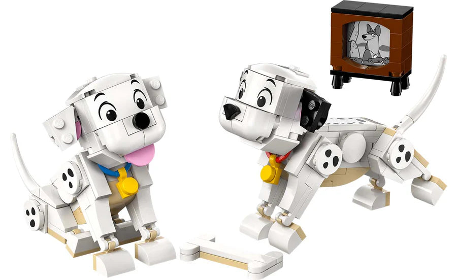 Thrill kids or animal fans aged 6 years and up with the Lucky & Penny 101 Dalmatians Puppies (43271) in this LEGO® ǀ Disney building toy. Packed with play options, the building toy includes 2 Dalmatian puppy characters from the Disney classic 101 Dalmatians, plus a brick-built toy bone and a small TV. The LEGO ǀ Disney puppy characters have movable heads, legs and tails, and can be posed in a variety of ways.
