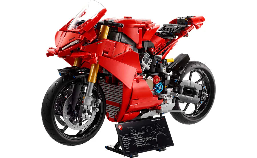 • LEGO® Technic Ducati Panigale V4 S Motorcycle – The model is packed with impressive details and authentic features like the front and rear suspension and steering