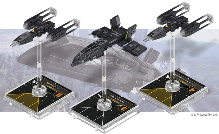 This Squadron Pack includes wanted criminals such as Kanan Jarrus and Arliz Hadrassian, featuring new abilities and upgrades based on their appearances in The Last Padawan and Bloodline. These pilots are joined by one HWK-290 Light Freight miniature and two BTL-A4 Y-Wing miniatures featuring stunning paint schemes.